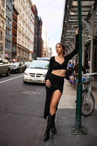 Bando Long Sleeve Crop Top Black