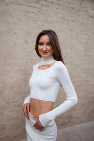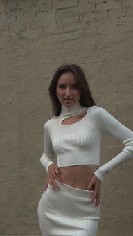 Cut Out Top Long Sleeve Ivory